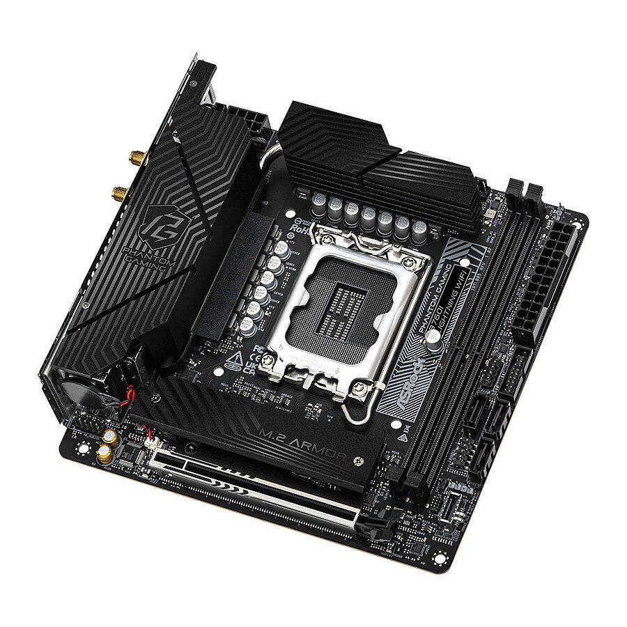 La carte mère ASRock B760I Lightning WiFi est destinée aux processeurs Intel Core 12, 13 et 14ème génération. Rassemblant l’essentiel des fonctionnalités, elle se prête à la réalisation d’une configuration PC multimedia ou gaming.