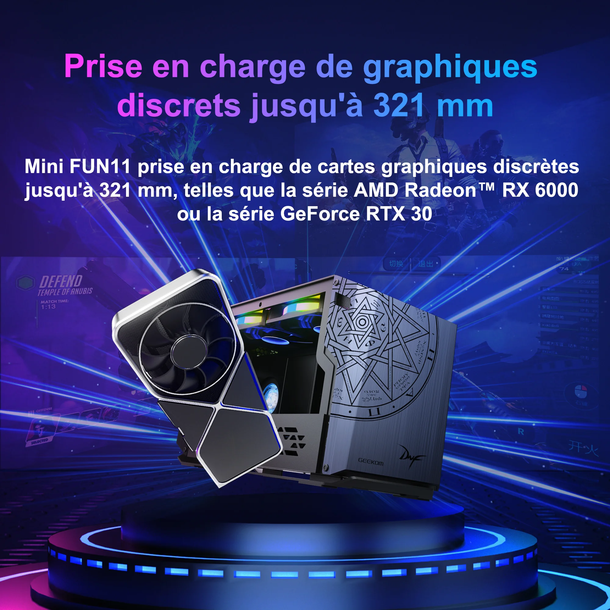 • Prise en charge des cartes graphiques discrètes jusqu’à 321 mm,