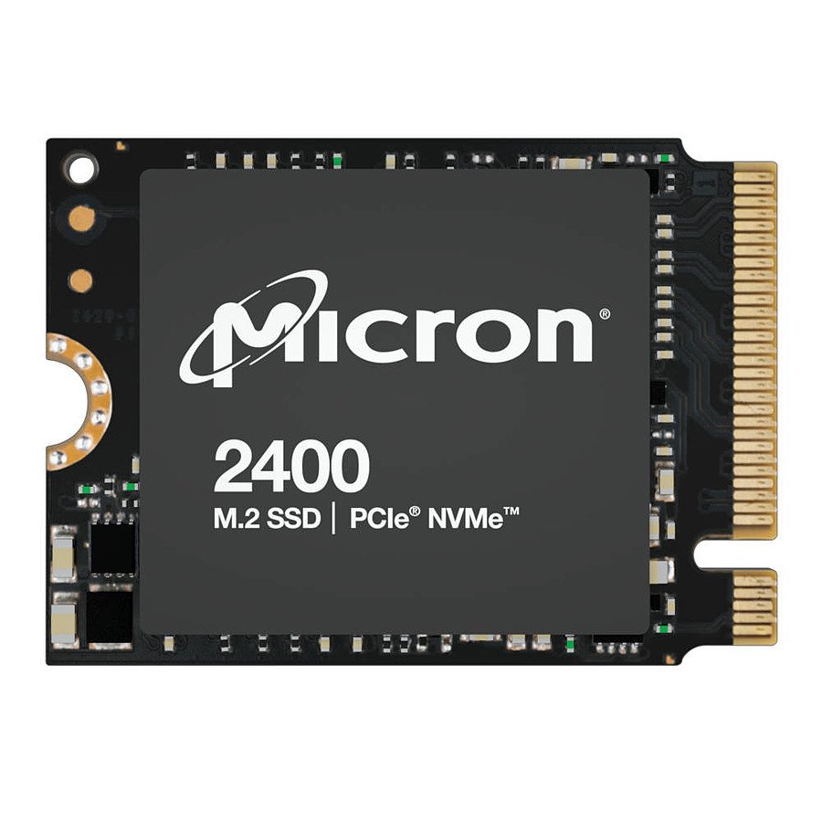 Le SSD Micron 2400, au format M.2 2230, apporte des performances excellentes dans un format ultra-compact de seulement 22 mm x 30 mm. Compatible avec les systèmes de gaming portables les plus populaires, il trouvera également sa place dans les machines fines et légères comme les ordinateurs portables Microsoft Surface Pro 8 et 9.