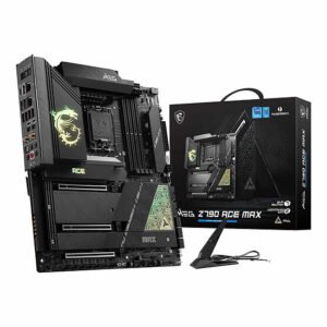 La carte mère MSI MEG Z790 ACE MAX bénéficie du traitement premium de MSI de son ésthétique sobre et discret avec son carénage noir uni, et grâce à des fonctionnalités qui la propulsent au rang de modèle très haut de gamme.